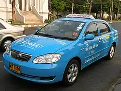 - Taxi : the public taxi stand is on the end of the arrival area. Follow the signs to the taxi stand. (Don't be fooled by all the taxi service booths in the main hall.) The same booth and slip system as at Suvarnabhumi Airport is used here. If the queue at the taxi stand is long or you need a more spacious car, you may want to book a (so-called) limousine taxi from the desks in the terminal. This will get you a slightly nicer car at about twice the price. There is also an unofficial taxi queue (but for proper metered taxis) on the main road right outside the terminal, to get there, use the bridge towards the railway station, but get off down the narrow staircase before crossing the main road (using this queue can cut the wait considerably and avoid the airport surcharge). Ignore any touts outside and do not get into any car with white licence plates, as these are not licenced to carry passengers.
