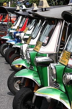 When getting a taxi, it is a good idea to hail a moving taxi from the main road, walk a short distance out of a major tourist area before looking for one, or use a ride-hailing app. This is no guarantee of honesty, but greatly increases your chances of finding an honest driver, of which there are plenty in Bangkok, even if it sometimes seems that every driver is on the make. There are some taxi drivers who switch off their meters, and insist on an unreasonable price. Most of the untrustworthy drivers are the ones standing still in tourist areas. Another important rule of thumb is to insist on the meter for taxis and agree on a price in advance for tuk-tuks. If they refuse, or quote unreasonable prices, just walk out and get a different one as they're rarely in short supply. The Thai phrase to ask a driver to use the meter is mee-TOE, khap if you're male and mee-TOE, kha if you're female. Don't ask taxi drivers for recommendations, they'll take you to the place that pays the highest commission.