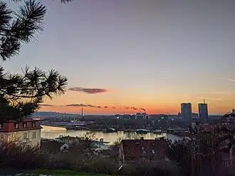 - 🌍 Hotel Srbija (Хотел Србија), Ustanička 127c (3 km south of centre, near Šumice park), ☏ +381 11 3044 000, office@hotelsrbija.com. Convenient for motorists, mixed reviews. Large restaurant on the 18th floor. Double from €60.