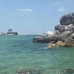 Pristine white sand beaches look out on a turquoise sea filled with great snorkeling and a fantastic display of offshore islands. Check out Tanjung Kelayang and Tanjung Tinggi for world-class beaches without the hustle and bustle now found at beaches of this caliber anywhere else. Natural features include white sand fringed coconut plantations, elaborate granite rock formations and long temporary sand bars as smooth as powdered sugar. Offshore islands are a long swim distance from the beach but colorful local fishing boats will take you on an island tour. The main town, Tanjung Pandan, is on its west side and has adequate facilities for a small town.