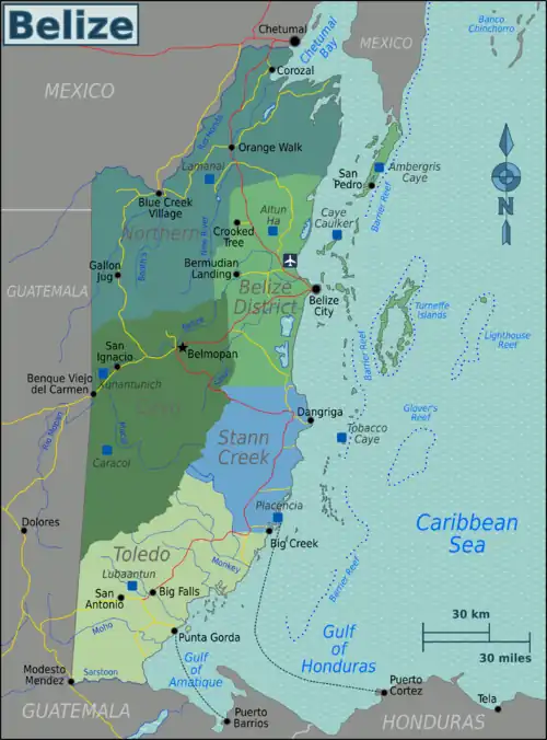 | Stann Creek Coastal region south of Belize District, access to quiet reef islands and boats to and from Honduras. |