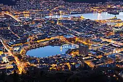 - Store Lungegårdsvannet is a lake or bay of brackish water separating central Bergen from areas to the south. Puddefjorden separates central Bergen from Laksevåg area to the west.