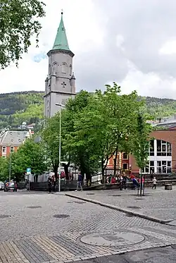 Downtown Bergen is compact and easy to walk for most visitors. Most sights and hotels are located within few minutes walk within downtown. While the very centre is located on a relatively flat piece of land, there are hills in virtually every direction out of the centre so heading downhill usually leads to centre. The main square is the east/west Torgallmenningen, a pedestrian zone. The Nordnes peninsula points north from the very centre, on the eastern side is Vågen, a small bay and once Bergens main harbour, lined on the eastern side by Bryggen and the Fortress. Overall navigation is generally easy as the summits and the bay provides clear indication of general direction, Mt Ulriken is a key landmark for large parts of the city, while downtown St John’s Church (Johanneskirken) with its characteristic red brick and green roof is another landmark. The sturdy theater building at the top of Ole Bulls place is also a point to note. Precise navigation through many irregular streets may still be challenging. Navigation by car can be equally difficult because of hills, narrow streets and many one-way streets, what seems close on the map may in fact be a long drive.