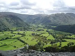The valley rises in the central Lake District, and runs north carrying the River Derwent into the lake of Derwentwater.