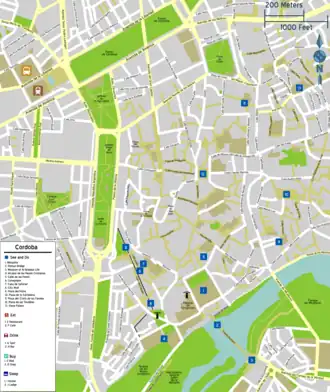 Just about everything of interest in Córdoba is within easy walking distance (the one notable exception being the Medina Azahara), and the typical tourist can do with the standard tourist map which can be obtained from the tourist offices (one on the east side of the Mezquita, another between the Alcázar and the city walls, and yet another in the train station, to name a few).