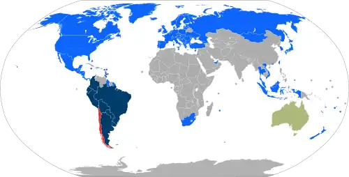 Chile is a founding member of both United Nations and the Union of South American Nations (Unasur) and is also now in the OECD, the group of the "most developed" countries by current international standards, becoming the first country in South America with that honour.