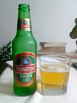- Beer (啤酒 píjiǔ) is common in China, especially the north. Beer is served in nearly every restaurant and sold in many grocery stores. The typical price is about ¥2.5-4 in a grocery store, ¥4-18 in a restaurant, around ¥10 in an ordinary bar, and ¥20-40 in a fancier bar. Most places outside of major cities serve beer at room temperature, regardless of season, though places that cater to tourists or expatriates have it cold. The most famous brand is Tsingtao (青島 Qīngdǎo) from Qingdao, which was at one point a German concession. Other brands abound and are generally light beers in a pilsner or lager style with 3-4% alcohol. This is comparable to many American beers, but weaker than the 5-6% beers found almost everywhere else. In addition to national brands, most cities will have one or more cheap local beers. Some companies (Tsingtao, Yanjing) also make a dark beer (黑啤酒 hēipíjiǔ). In some regions, beers from other parts of Asia are fairly common and tend to be popular with travellers — Filipino San Miguel in Guangdong, Singaporean Tiger in Hainan, and Laotian Beer Lao in Yunnan.
