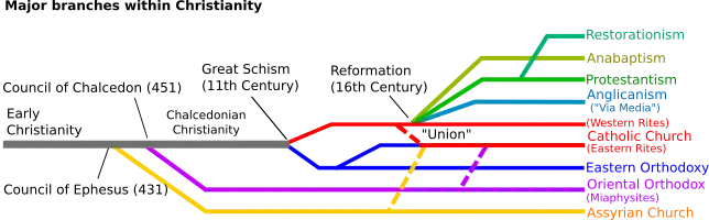 See #Denominations below for some of the later history, in particular for the schisms that led from the single church of Roman times to the many that exist today.