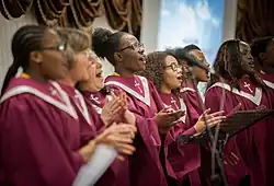 Most churches welcome non-Christians to join their services and ceremonies. When attending, it is appropriate to dress conservatively and show respect; details vary by place. It is a very good idea to learn a bit about the local rules before visiting a place of worship. There is a vast difference between any expected behavior during a service; in some there is a serene atmosphere, where even off-topic whispers are avoided, not to mention taking photographs, eating or checking a mobile phone. The Roman Catholics have an eucharistic fast, not eating for an hour before the communion. On the other hand many churches are more like a modern concert in style, where eating, chatting etc. are welcome. Some even have the eating and drinking as the basis of the service sitting around in a 'Café Style'. Similarly, while some styles of worship involve the congregation quietly listening to a professional choir singing hymns, in others most pieces are sung by all the congregation, and at many churches of people of African heritage in the Americas, the congregation is expected not only to join the choir in singing, but also to clap, even dance. You should avoid leaving the church while the service is in progress, again depending on the type and style of service. After some services, most or all of the participants may stay (or walk somewhere) for a cup of coffee or other refreshments, to socialize with the rest of the congregation, and you may well be personally welcomed and asked about what brought you here.