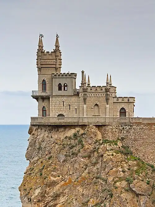 Russia's long-time summer playground, Crimea has seen various expressions of holiday spirit. Here is the fanciful 1912 Swallow's Nest between Yalta and Alupka: summer retreat of an early oil baron.