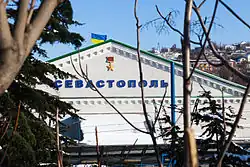 Sevastopol in Cyrillic on the railroad station