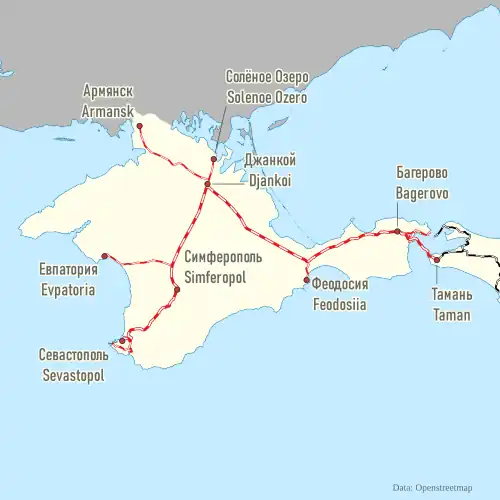 Map of Crimean railway (2020, UZ lines are not shown)