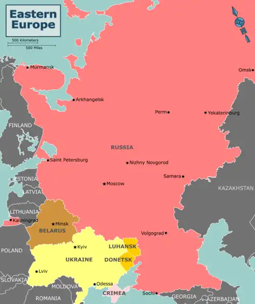 The term Eastern Europe can be defined in several different ways; see the understand section below for a discussion. This article uses a fairly narrow definition, covering only Belarus, Russia and Ukraine.