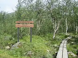 Trail with duckboards through fell birch forest, Malla nature reserve by Kilpisjärvi