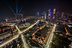 - The Singapore Grand Prix is the first F1 race held at night, and the backdrop of the city of Singapore makes this event a visual feast not to be missed. The Marina Bay Street Circuit winds itself around the harbourfront, going past local landmarks such as the Singapore Flyer, the Fullerton Hotel, and the Merlion Park.