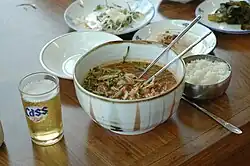 - Cold Raw Fish Soup (๋ฌผํ): There are many port cities in Gangwon, so sashimi is famous in Gangwon. Cold Raw Fish Soup is sashimi with special soup. Its ingredients include many vegetables, special sauce (normally spicy sauce), and special soup. Normally Korean people enjoy the Cold Raw Fish Soup with a bowl of rice.