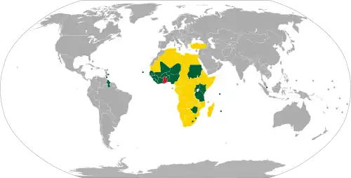 ECOWAS countries, plus Botswana, Egypt, Eswatini, Kenya, Lesotho, Malawi, Singapore, Tanzania, Trinidad and Tobago, Uganda and Zimbabwe.