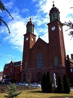- the Polish Cathedral Style, which, as its name indicates, was brought by immigrants from Poland to areas of the United States where they settled in large numbers: namely, the industrial cities of the Great Lakes and Mid-Atlantic regions and, to a lesser extent, southern New England. Built in the greatest numbers between 1870 and the First World War, these structures were invariably much larger and more ornate than neighboring churches: their grand scale served as a testament both to the glory of God and to the prestige of the Polish-American communities who built them, but also led to criticism from other denominations about the use of donations from poor immigrant parishioners to fund lavish church buildings.