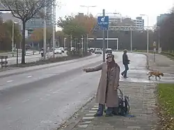 Hitching a ride at a signposted hitchhiking zone in The Hague