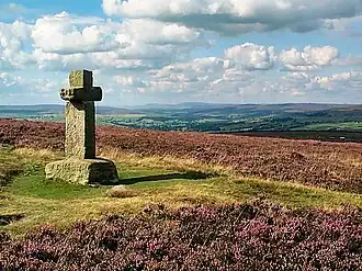 - Ilkley Moor rises steeply at the south edge of town. It's the local section of Rombald's Moor (summit 402 m), as each flanking village gives its name to its neighbouring slopes. Lots of walking trails, Dales Way / Ebor Way is the trail atop the scarp. Several stones have prehistoric inscriptions, such as the Swastika Stone.