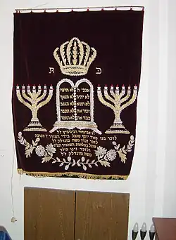 The synagogue does not have a fixed architecture, though it usually faces towards Jerusalem; Jews generally face Jerusalem when they pray. At the front is an "ark" (ahron) in which Torah scrolls are kept. There is also a platform (bimah) where the Torah scroll is placed while being read. In Orthodox and some Conservative congregations, men and women sit separately.