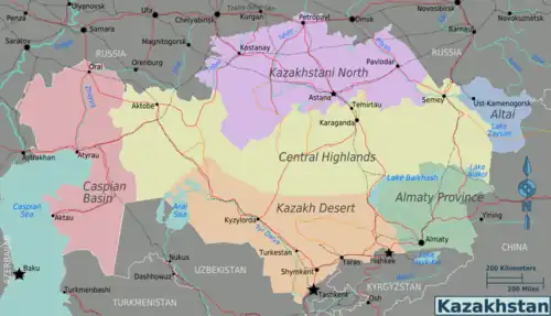| Kazakhstani North These are the cold steppes home to the national capital, the country's Russian minority, and industrial cities. |