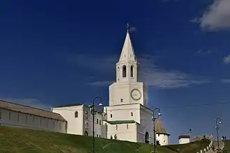 - 🌍 Suyumbike Tower, within Kremlin. Hours as for Kremlin. Söyembikä (various spellings, usually Suyumbike in English; in Cyrillic Сөембикә) was a Tatar princess, and regent of Kazan 1549-1551 during the minority of her son. In 1551 Ivan the Terrible captured the area, and the legend goes that he pressured the widowed princess to marry him. She consented to marry only if he could build the highest tower in Kazan in seven days, which he promptly did; so she jumped to her death from the top of the tower. In truth she was carted off to Moscow, re-married (her third) and died some time around 1554, while the tower was probably built at a much later date. It's 58 m tall, in tiers; it famously used to lean, but was stabilised and straightened in the 20th-century. You can admire it from the outside but you can't enter or climb it. Free.