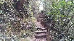 The trails (even the ones paved with concrete or using wooden planks) are not wheelchair-friendly as they invariably include stairs, narrow sections or other obstacles.