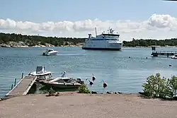 The port for the northern ferry route from Åland (via Brändö) is in 🌍 Vuosnainen in the south-west of Kustavi. See Brändö for special arrangements for this connection.