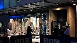 - π BBC Broadcasting House (New Broadcasting House aka NBH), Portland Place (tube: Oxford Circus BAK CEN VIC or Great Portland Street CIR H&C MET ). Due to security reasons the Broadcasting House is not open to visitors. The complex incorporates the Old Broad House built in 1930s. The faΓ§ades of which feature the famous sculpture of Prospero and Ariel and the Ariel friezes by Eric Gill and Gilbert Bayes. BBC's The One Show is transmitted from the studio at the ground floor every weeknight starting from 7PM. The studio is quite visible from the plaza outside and some parts of the show are performed from outside of the studio β in the plaza.
