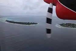 No point in the Maldives is more than 90 minutes away by plane from Malé, and visitors to the more far-flung resorts use air taxi services. There are four main operators: Manta Air, Villa Air operates scheduled flights from Malé to Maamigili and Dharavandhoo, Trans Maldivian Airways which flies DHC-6 Twin Otter seaplanes that take around 15 passengers. The company schedules most planes at 6PM the previous day. Delays are frequent, it is not rare to wait for 5 hours in the TMA lounge. Seaplane scheduled in the evening has a high risk of being cancelled as delays add up and the sky becomes darker, in such cases TMA will make you take a combination of domestic flight and boat, potentially making you reach your destination well after dinner time.