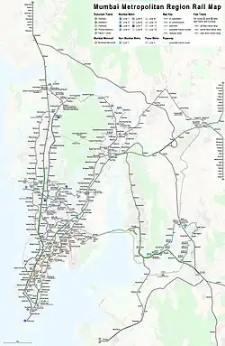 - Lonavala (111.5 km (69.3 mi), 1.5 hr) — best reached by road. Suburban trains do not ply to Lonavala, and may need to exchange train at Karjat or take en route long-distance train