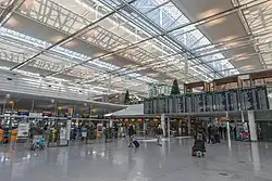 The airport features two Terminal buildings, Terminal 1 (sections A-F) and Terminal 2 (sections G, H, K and L) which are connected by a central landside area Z and altogether form an H-shape.
