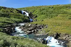 From Gautelishytta to just beyond Ny-Sulitjelma fjellstue, the trail concedes with Nordlandsruta as well as the E1. The trail continues to Skoaddejávre.