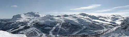 Keep in mind that avalanches are common. Unless you know exactly what you're doing, stay in marked slopes when skiing. If you think you know what you're doing, think twice. 12 people were killed in avalanches just in the first three months of 2011 in Norway. For safety measures, see below.