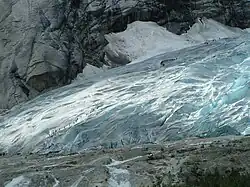 Glaciers are some of the most dangerous places for visitors to the Norwegian outdoors. Never underestimate the power of glaciers. Observe warning signs. Never approach the front of the glacier. Observe warning signs and do not cross fences. Most glaciers do not have any kind of signs or fences, and visitors should keep a generous distance. A glacier is not a stable piece of ice, it is constantly moving like a very slow river and huge chunks regularly fall off. There are countless glaciers in Norway and even smaller and apparently insignificant glaciers are powerful compared to tiny humans.