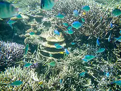 The Okinawa archipelago is one of the world's best diving destinations, with the count of marine species on par with the Great Barrier Reef of Australia. You can find over 400 types of corals, 5 types of sea turtles, manta rays, whale sharks, hammerhead sharks and many kinds of tropical fish. The main downside is that's quite expensive compared to, say, South-East Asia — a whole day's diving off a boat (2-3 dives including insurance and lunch) costs between ¥12,000 and ¥17,000, depending on the season and island, plus an additional cost between ¥3,000 and ¥5,000 if you need gear rental. For a 3-day certification course you will need to pay between ¥30,000 and ¥60,000, depending on the season and number of participants. Fortunately, a lot of the diving on Okinawa can be done from the shore (no boat needed), in which case you can get full gear rental and tanks for around ¥5,000, or if you just need tanks (and can guide yourself) then it will only be around ¥500 per tank. To top it off many shops do not accept credit cards, so you will need to carry a thick wad of yen to pay for it all. The language barrier can also be an issue, with most shops only set up to cater to Japanese-speaking tourists, although Piranha Divers Okinawa, Reef Encounters in Chatan or Bluefield in Kadena on Okinawa Island, and Umicōza on Ishigaki are welcome exceptions.