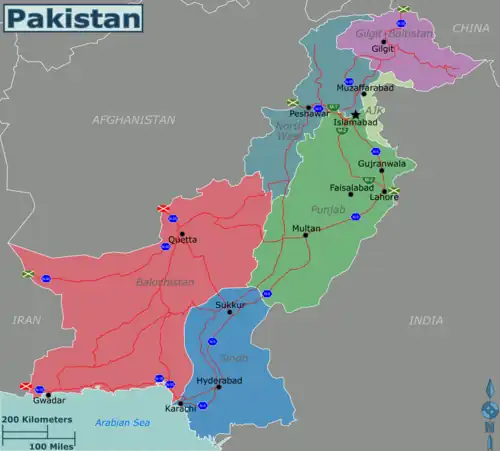 The Islamic Republic of Pakistan (Urdu: پاکستان) is a country at the crossroads of Western, Central, South and East Asia. Conceived as a separate homeland for Muslims in South Asia, the country's tourism industry had its heyday during the 1960s thanks to the Hippie Trail. Unfortunately, the country has been in a state of flux since the 1970s, with many countries declaring it unsafe to visit.
