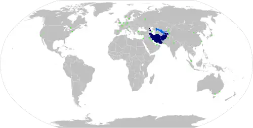 Today, Persian is mainly spoken in Iran, Afghanistan, Tajikistan, Uzbekistan and Bahrain. It has official status in the first three countries but was once the official, court, or literary language of many more places ranging from Turkey through India. At this time, many Persian poets emerged from the Indian subcontinent, Central Asia and the regions under the control of the Ottoman Empire. It is still appreciated as a literary and prestigious language among the educated elite. Many people in Iran and neighboring countries know Persian fluently even if it's not their mother tongue. The Persian Empire was historically much bigger than today's Iran before losing many territories, especially to its neighbor Russia. After the 1979 revolution, many Iranians migrated to the West and as a result, there are numerous Persian-speaking communities throughout the world, particularly in the USA. Persian is the second language of Islam so in many Islamic countries you can find someone knowing Persian.