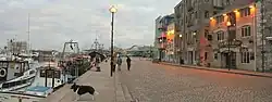 The Barbican has a number of restaurants and bars lined up along the quayside. Notably few serve fresh locally caught fish; a local peculiarity for a fishing city. North Sea cod is generally only served battered and fried, with chips.