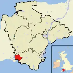 - π Exeter Airport (EXT IATA) is a 45-minute drive to the north-east (or bus to Exeter and train from there).