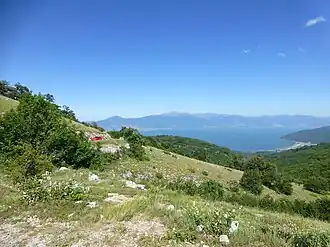 Prespa (Macedonian: Преспа) is a region surrounding the Great Prespa Lake and Small Prespa Lake. This international region is shared by Albania, Greece, and North Macedonia, which contains a majority of the Great Prespa Lake. North Macedonia's share of the region is completely within Resen Municipality, bound by Galičica National Park to the west, Pelister National Park to the east, the borders with Albania and Greece to the south, and northern parts of Resen Municipality to the north.