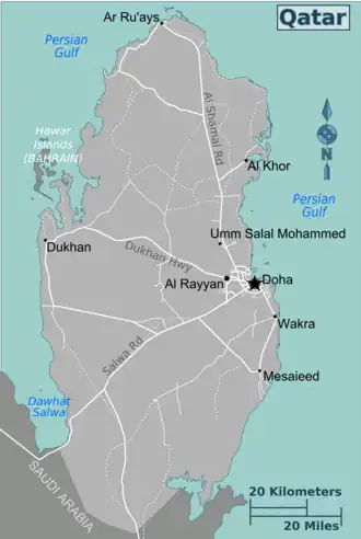 | Ad Dawhah (Doha) Comprises the capital Doha, the Industrial Area, an exclave surrounded by Al Rayyan municipality, and the Wholesale Market Area, another exclave bound by Al Rayyan and Al Wakrah municipalities |