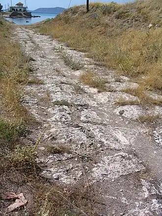 Ireland's first railway opened in 1834 to connect Dublin to its port of Kingstown, now Dún Laoghaire. As in Great Britain, the Irish rail network grew during the 19th century but on a much smaller scale. The terrain was lowland and not difficult to cross, but the population was thinner (especially after the disastrous Famine) and there were fewer industrial customers for freight traffic. In the 1840s the two islands adopted standard gauges for all their tracks but with different widths. Great Britain's was 1435 mm which became the "standard gauge" for many countries, Ireland chose 1600 mm, so its coaches have a little more elbow-room. The mythology arose that GB standard gauge derived from the ruts of Roman chariots. Ireland's gauge happened to match the Diolkos (Δίολκος) by which ships were portaged across the isthmus of Corinth circa 600 BC; scholars have somehow overlooked this toga-wearing epoch of pre-Celtic Ireland.