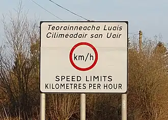 Typical Irish road sign showing place names in both Irish and English