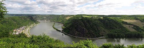 - 🌍 Loreley (above Sankt Goarshausen, opposite St. Goar). Large rocky outcrop on a bend in the Rhine river. Provides great views of the valley.