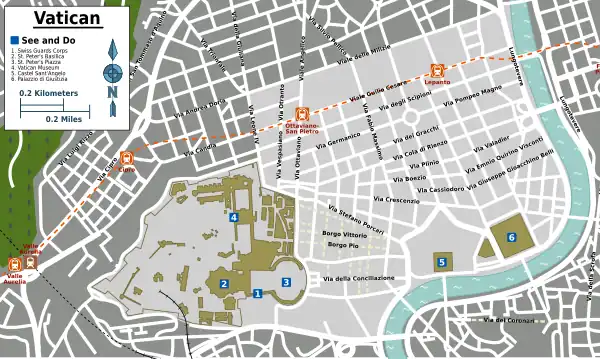 | Routes through Vatican |