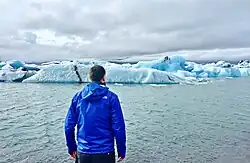 The first point one passes as he enters the East are the Skaftafell' and Vatnajökull National Park. A left turn to route 998 will lead you to their joint ranger station and campground. This park extends all the way to north Iceland, but major highlights from its southern side include: hiking the Svínafellsjökull glacier (which has been depicted in Hollywood films), going down the ice cave under the Vatnajökull glacier, Iceland's highest peak (called the Hvannadalshnúkur), and the Jökulsárlón lagoon where perhaps the only iceberg complex outside the poles can be found. The adjacent Diamond Beach allows anyone to stand near the icebergs that have calved off the glacier. Many of those that are about to melt will be a transparent blue or white, like the normal ice one uses for drinking, hence the diamond-like appearance. Sometimes seals can be seen on the icebergs. But at all times, do not attempt to climb them.