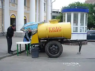 Quality of tap water varies around the country, and may even be variable within cities. In old buildings tap water can be non-potable. In the big cities of European Russia, the water is clean of biological contaminants, but often suffers from the presence of heavy metals, due to outdated city plumbing. If you can't buy bottled water, boil water before drinking, or better yet use a special filter for tap water, which you could buy in any supermarket. Bottled water costs only about 40-80 руб for 2 liters (0.44 imp gal; 0.53 U.S. gal).