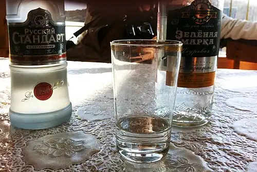 Be careful not to buy fake vodka, which can be dangerous (seriously here, 'dangerous' doesn't mean 'strong'; it can contain methanol). Only buy vodka in large stores or specialized ones, with the sticker over the cap and/or the region's barcode on the side.